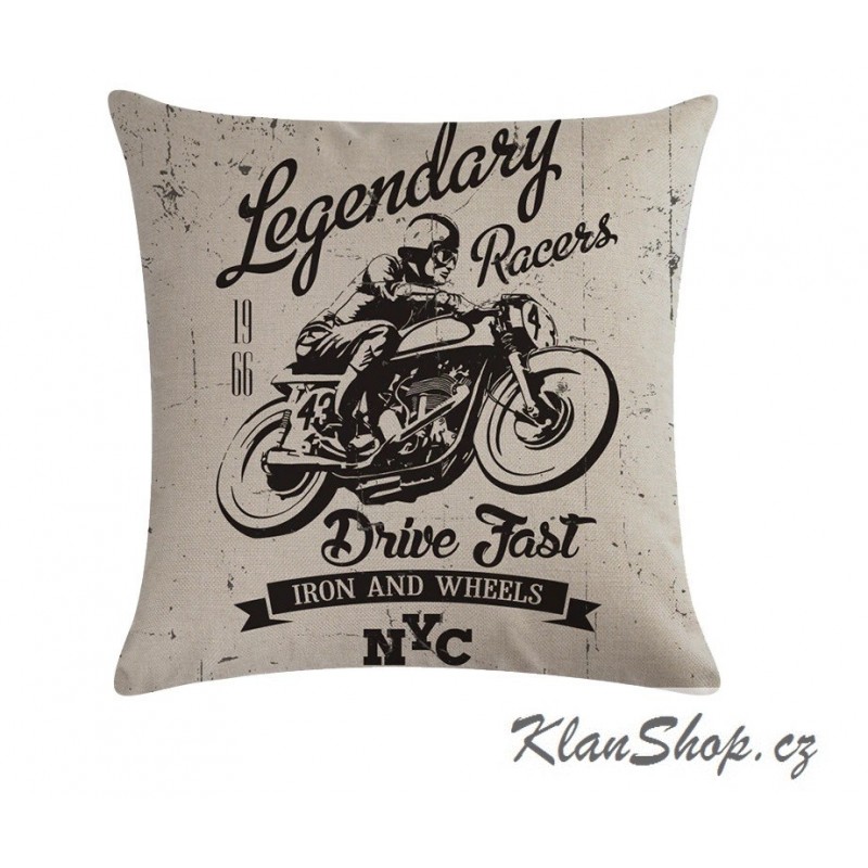 Povlak na polštář s potiskem z jedné strany - Legendary racers - závodník na Café raceru.