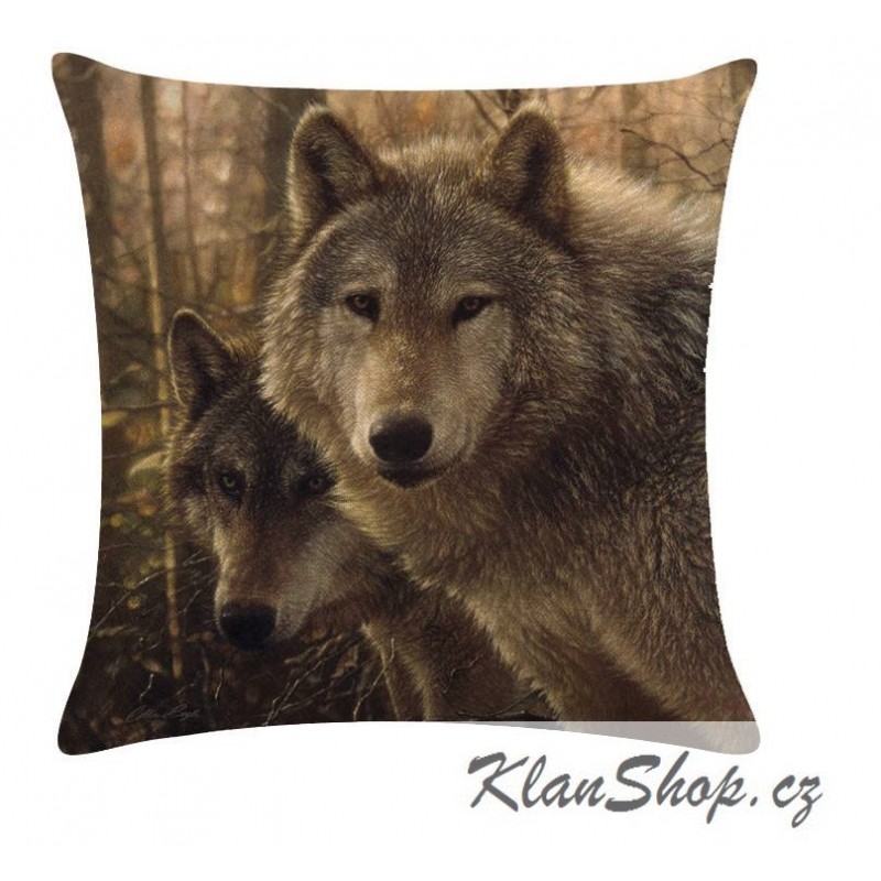 Povlak na polštář s potiskem z jedné strany - dva vlci.