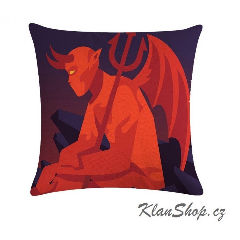 Povlak na polštář s potiskem z jedné strany - Satan (ďábel) s křídly a trojzubcem.