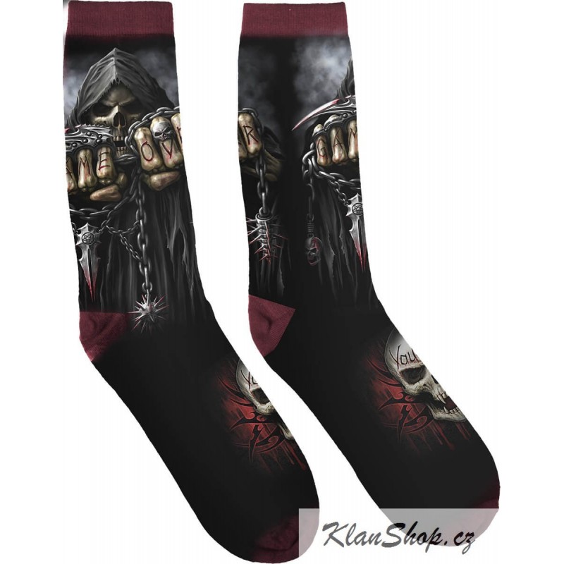 Barevné designové ponožky pro (rockové a metalové ponožky) - smrtka Game over.