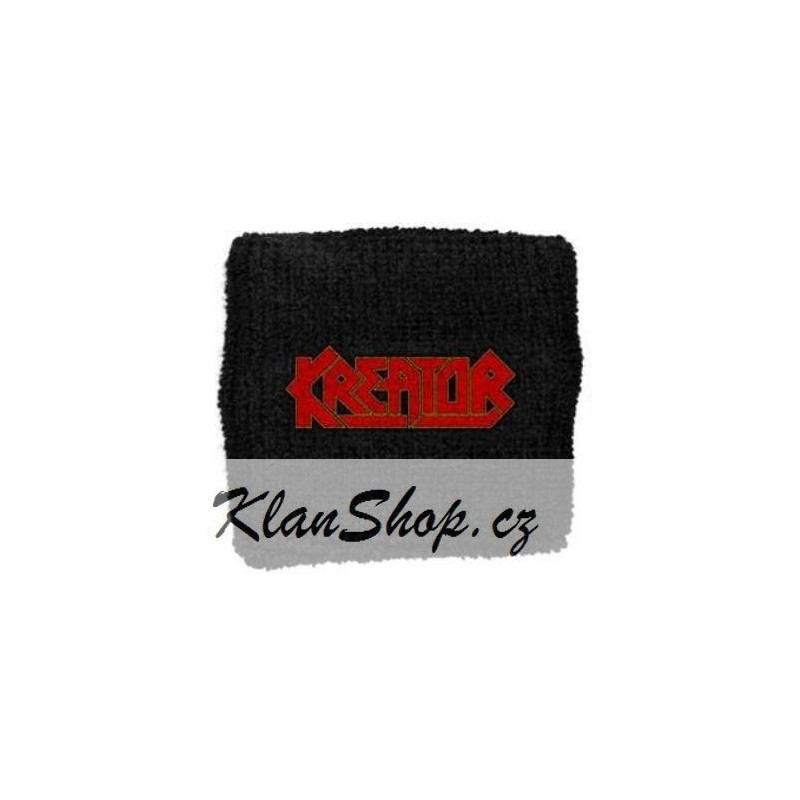 Černé potítko na zápěstí s logem (vzorem) skupiny Kreator.