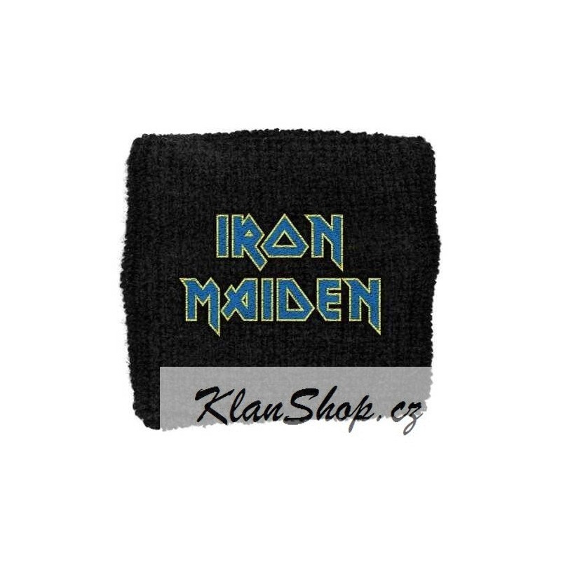 Černé potítko na zápěstí s logem (vzorem) skupiny Iron Maiden.
