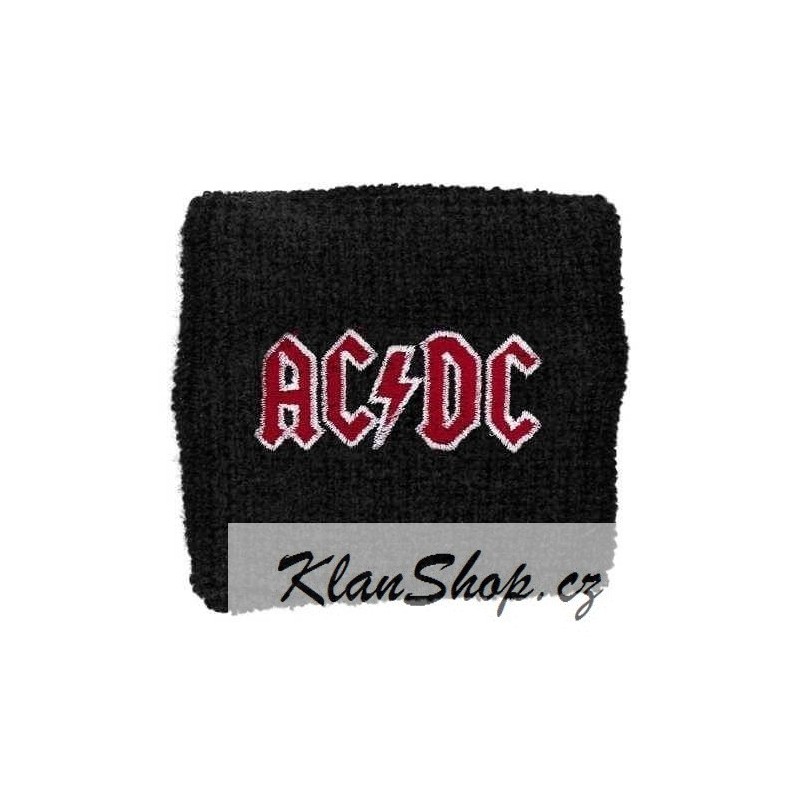 Černé potítko na zápěstí s logem (vzorem) skupiny AC/DC.