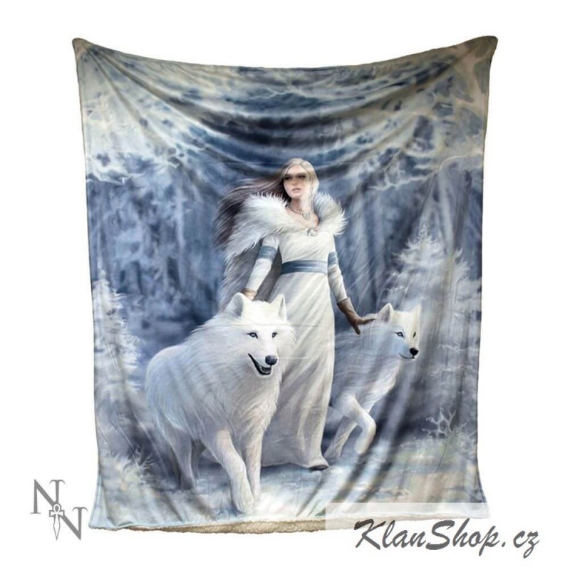 Přehoz - fleecová deka - sněžní vlci se sněžnou královnou.
