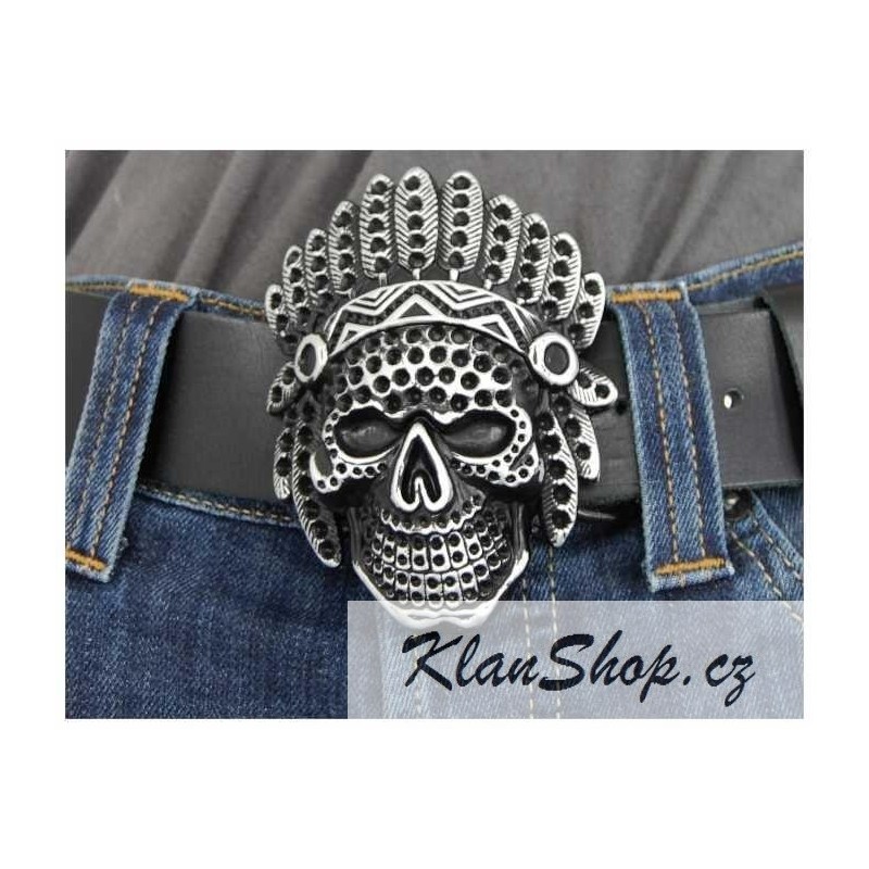 Přezka na opasek (pásek) s motivem - indiánská lebka, lebka s apačskou čelenkou.