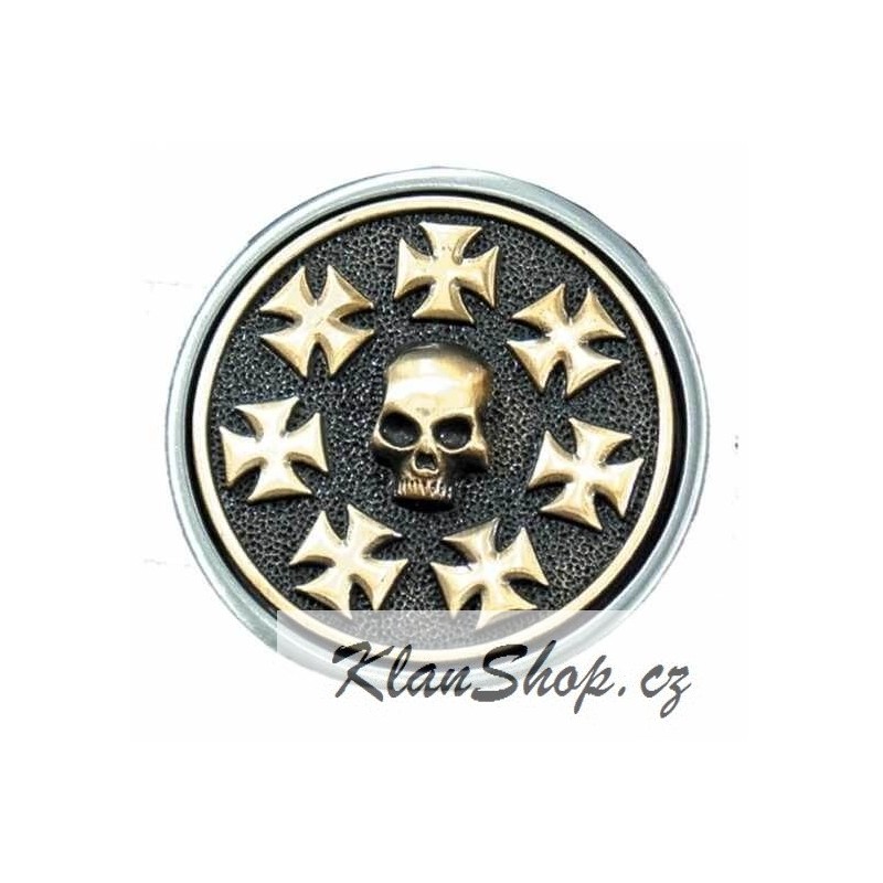 Přezka na opasek (pásek) s motivem - lebka s křížema.