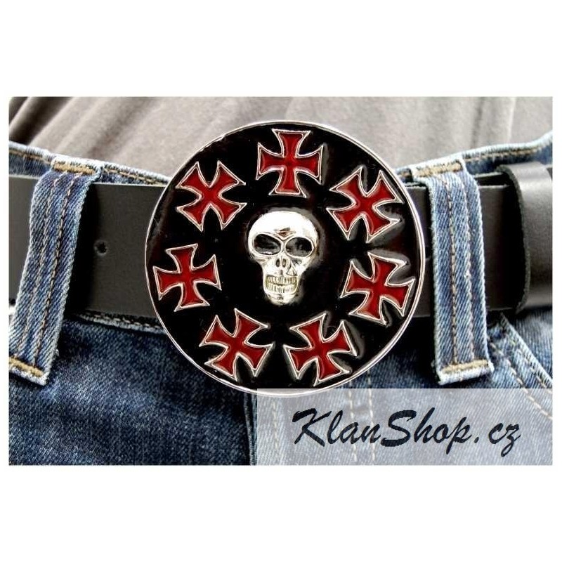 Přezka na opasek (pásek) s motivem - lebka s červenými kříži.