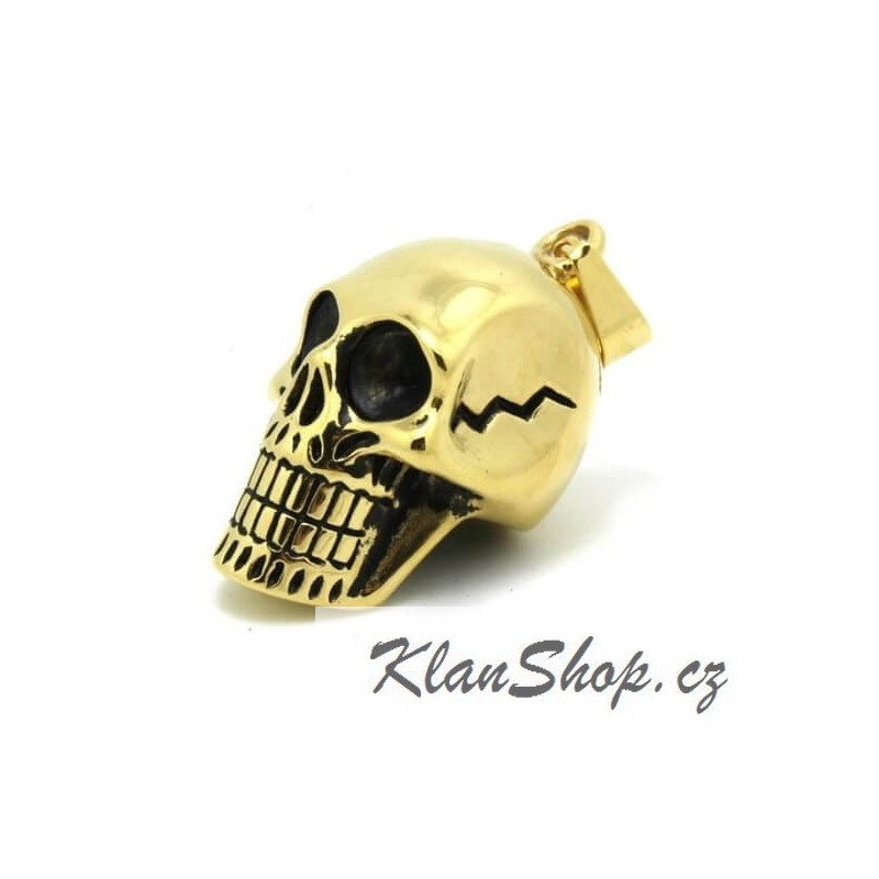 Přívěsek z chirurgické oceli, lesklá úprava - Lebka ve zlaté barvě.