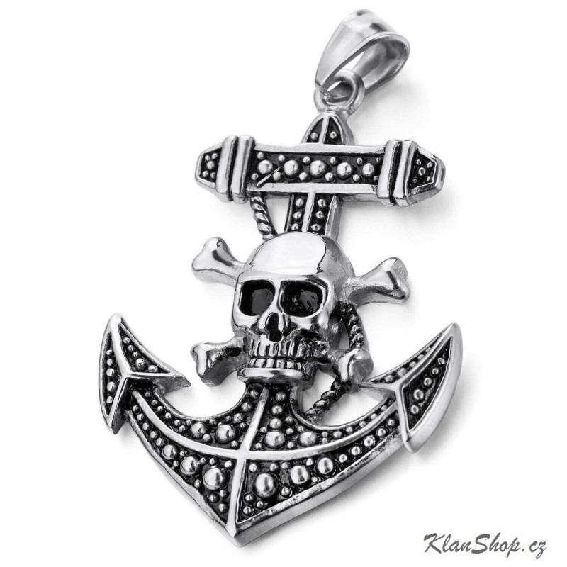 Přívěsek z chirurgické oceli, lesklá úprava - Kotva s lebkou.
