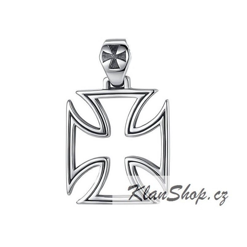 Přívěsek z chirurgické oceli, lesklá úprava - chopper motorkářský kříž.