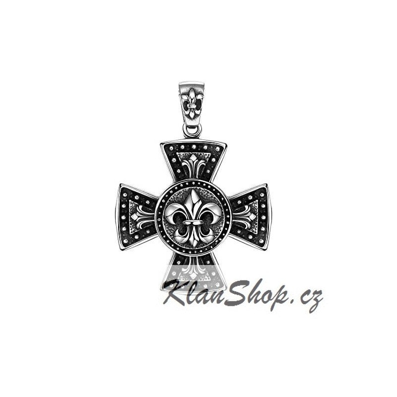 Přívěsek z chirurgické oceli, lesklá úprava - kříž s ornamenty.