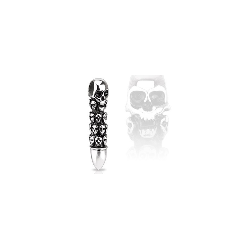 Přívěsek z chirurgické oceli 316L, kulka do pistole s lebkami.