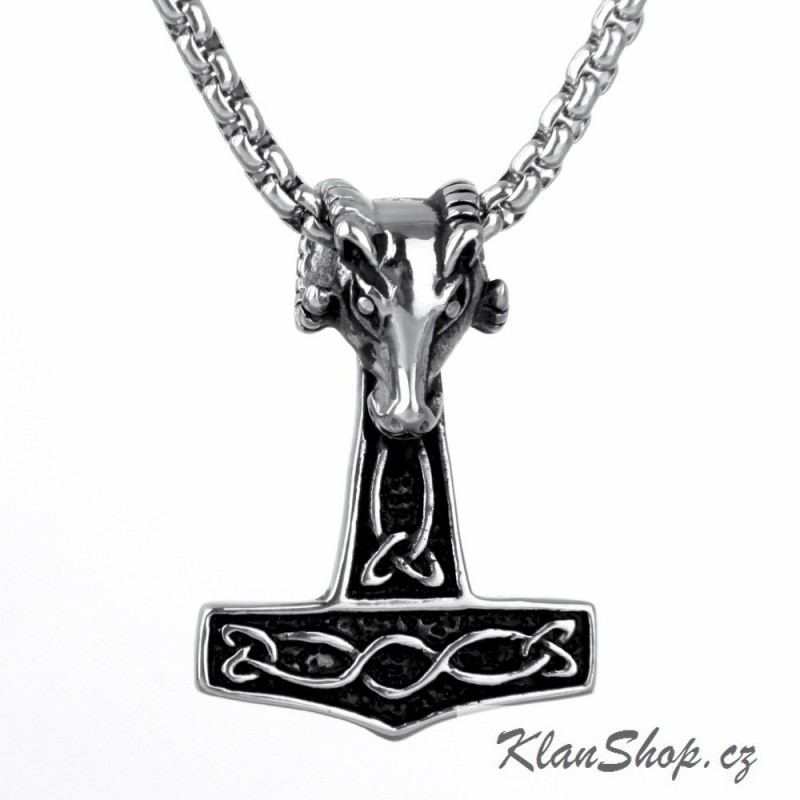 Přívěsek z chirurgické oceli 316L, malé Thorovo kladivo s beraní hlavou.