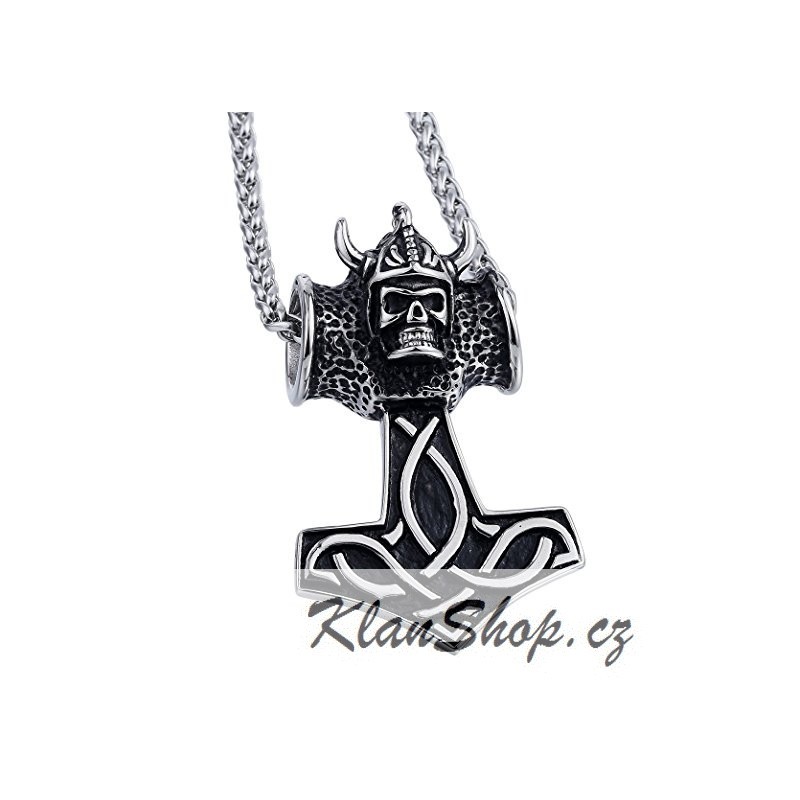 Přívěsek z chirurgické oceli 316L, malé Thorovo kladivo, lebka s vikingskou helmou.