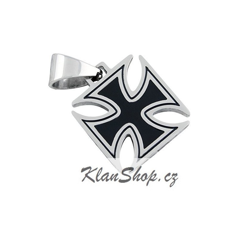 Přívěsek z chirurgické oceli 316L, malý motorkářský maltézský černý kříž.