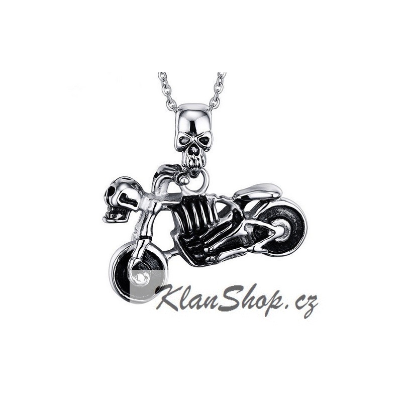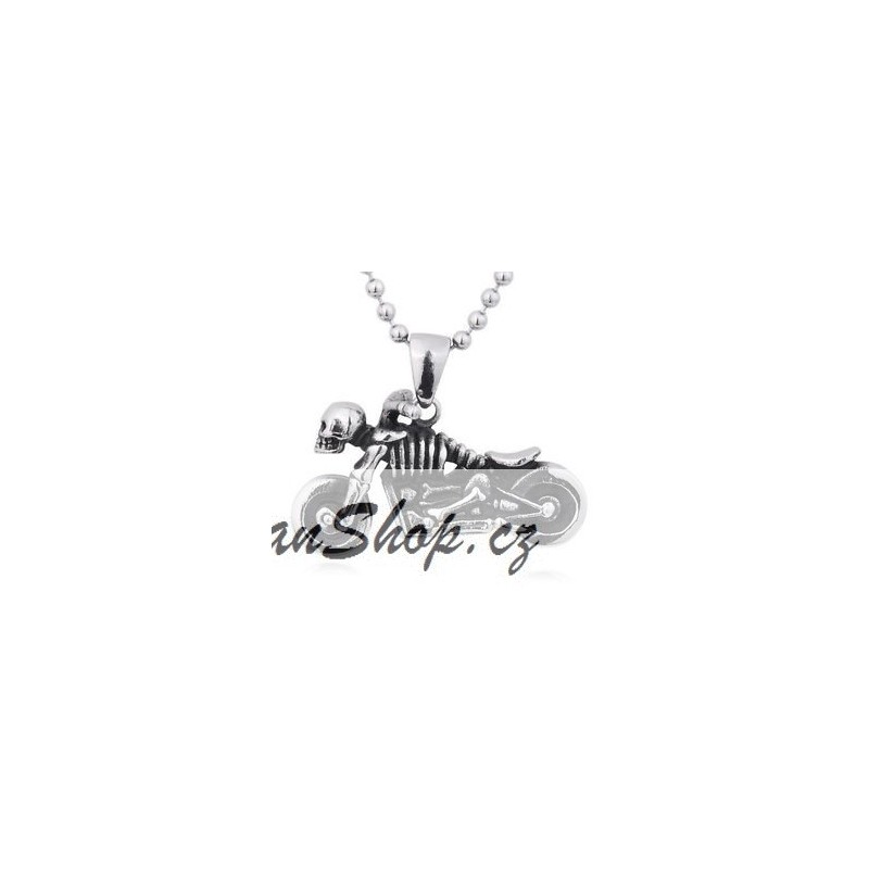 Přívěsek z chirurgické oceli 316L, skeleton (kostlivec) na motorce.
