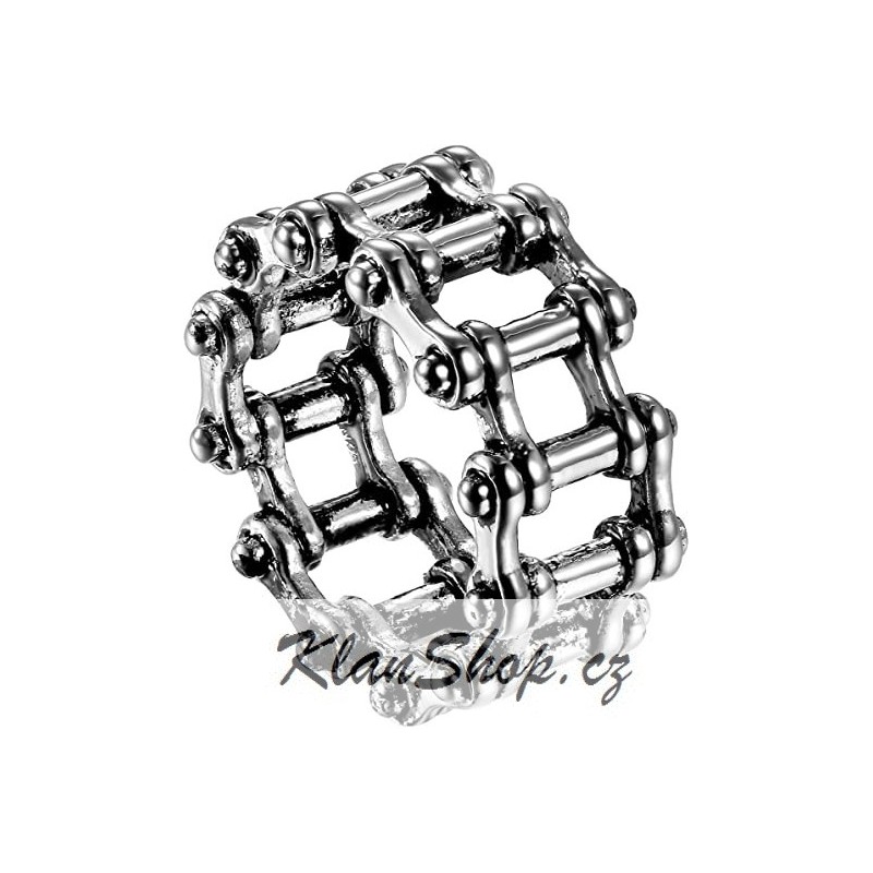 Prsten z chirurgické oceli, lesklá úprava, motorkářský prsten - motorový řetěz.
