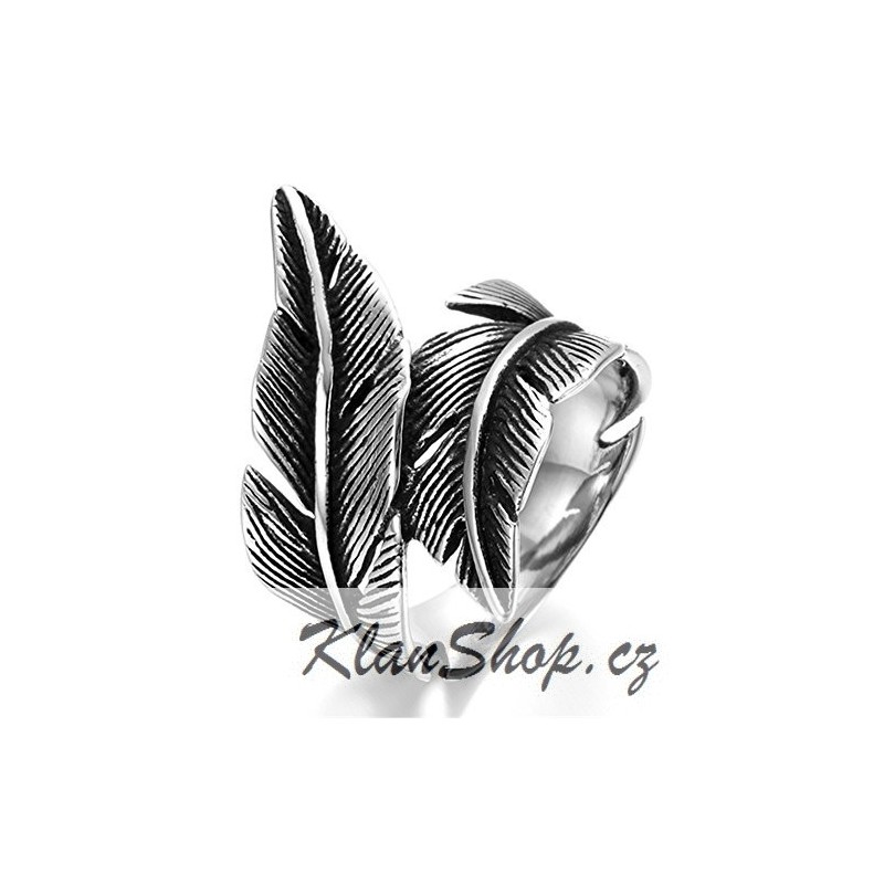 Prsten z chirurgické oceli, prsten složený ze dvou pírek.