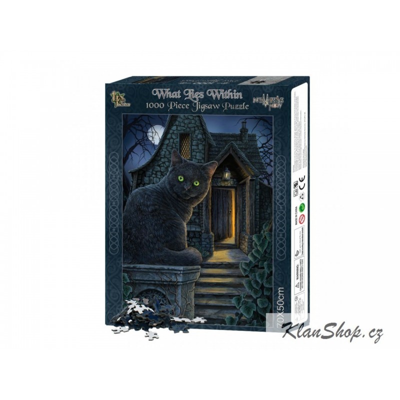 Puzzle s 1000 dílky s motivem - černá kočka u chaloupky.