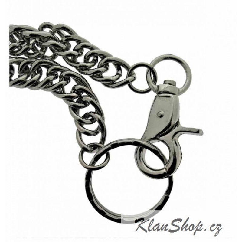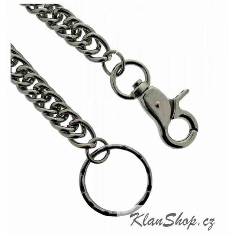 Řetěz ke kalhotům, vhodný i pro připnutí peněženky, složený z oček, zavírání na karabinku.