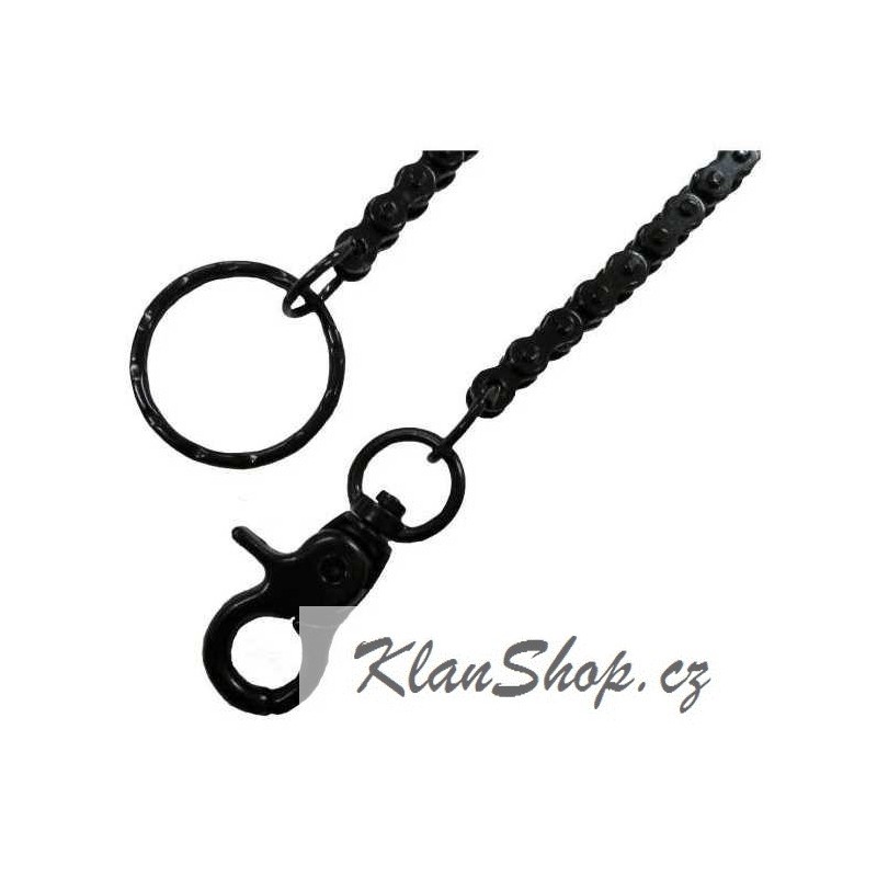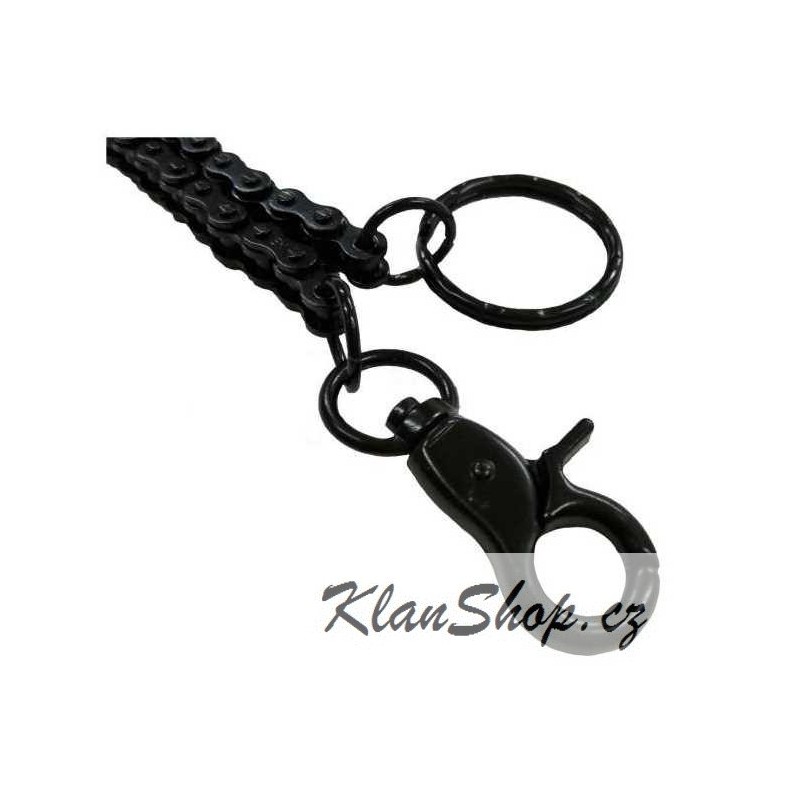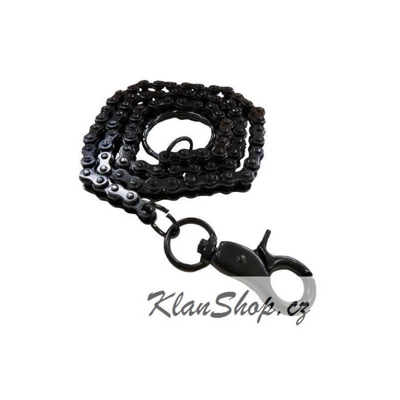 Černý motorový řetěz ke kalhotům, vhodný i pro připnutí peněženky, zavírání na karabinku.