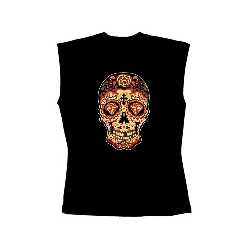 Pánské tričko bez rukávů s potiskem, barevná lebka, muertos.