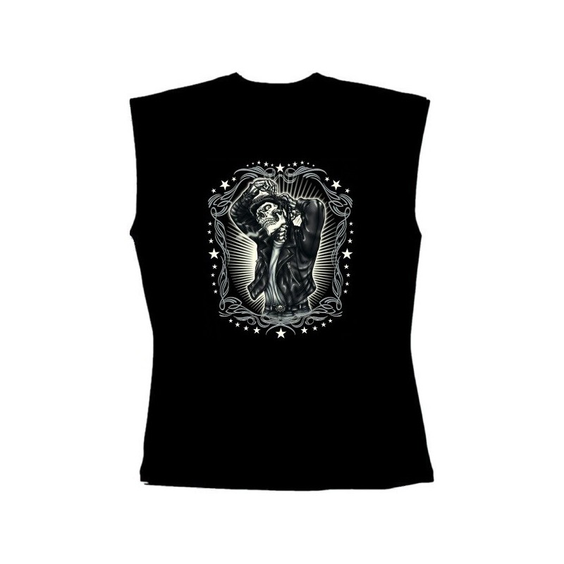 Pánské tričko bez rukávů s potiskem, retro motiv James Dean, zombie Dean.