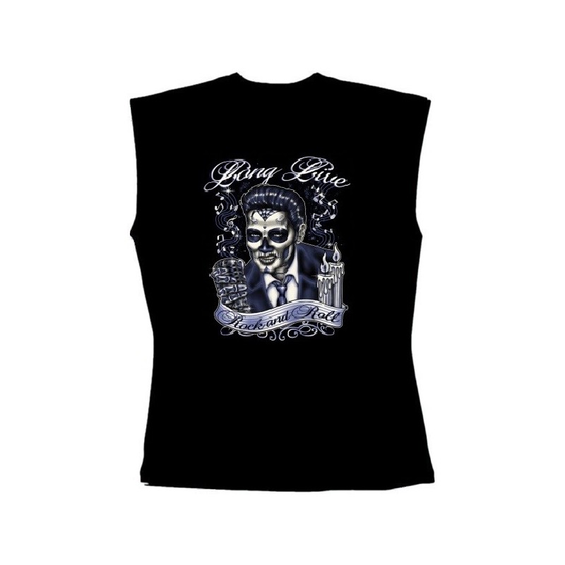 Pánské tričko bez rukávů s potiskem, retro muertos Elvis.