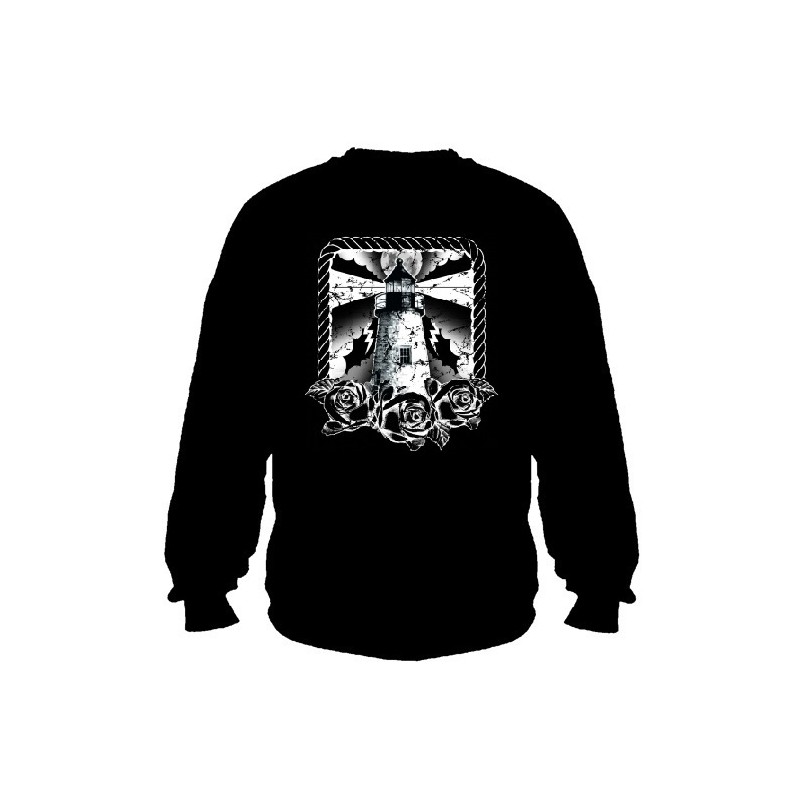 Pánská mikina bez kapuce a zipu s potiskem, černobílý maják s růžemi.