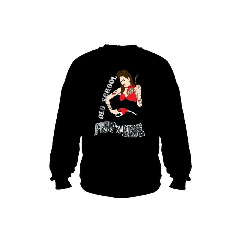 Pánská mikina bez kapuce a zipu s potiskem, old school holka s pistolí.