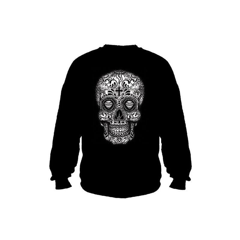 Pánská mikina bez kapuce a zipu s potiskem, černobílá muertos lebka.