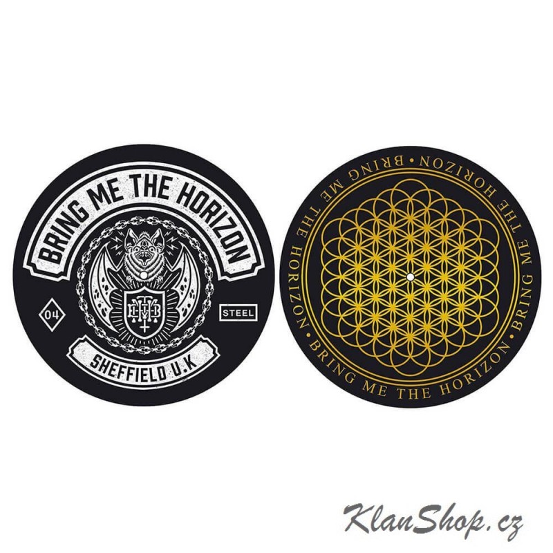 Set dvou slipmatů (podložek) na gramofonové desky (gramofon) s potiskem Bring Me The Horizon Sheffield UK.