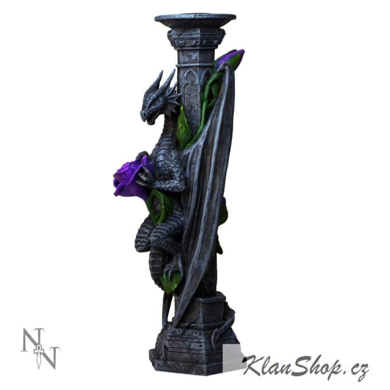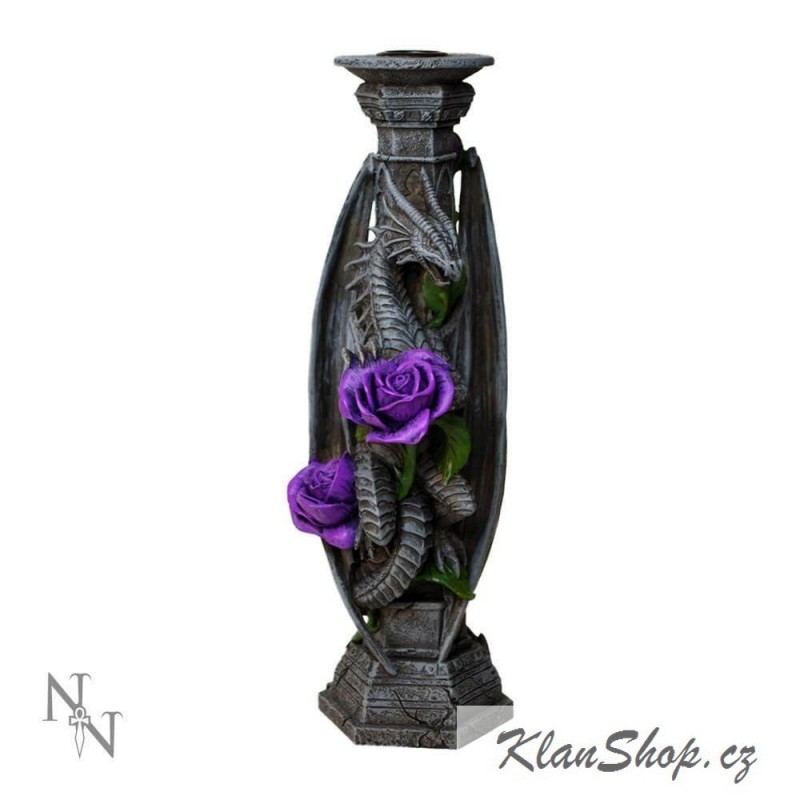 Dekorační svícen (stojan na svíčky) - držák na svíčky - drak s fialovými růžemi.