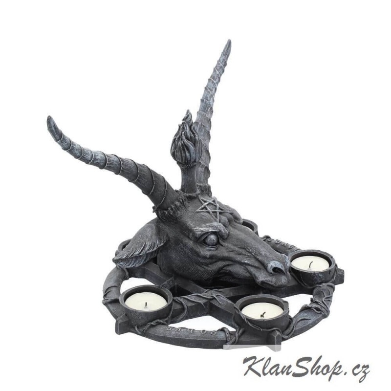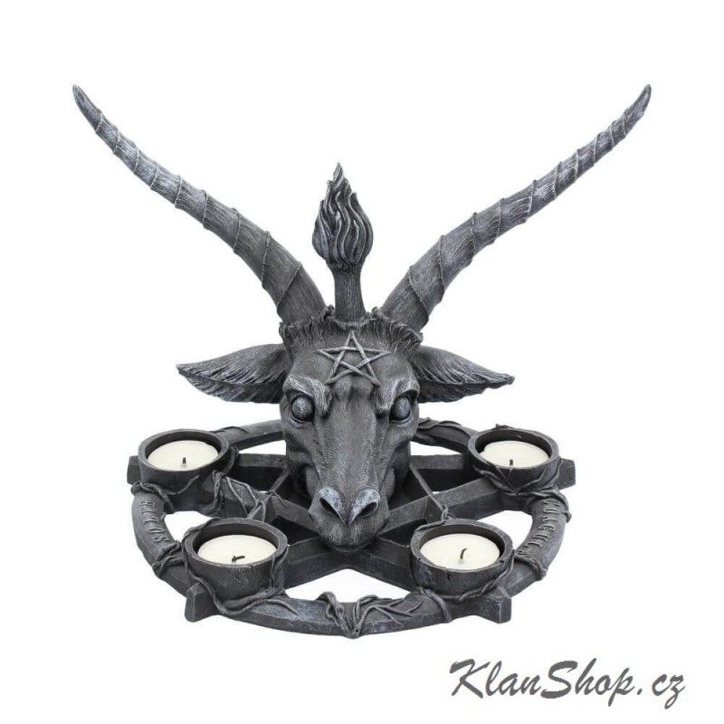 Dekorační svícen (stojan na svíčky) - držák na svíčky - hlava baphometa na pentagramu na 5 svíček (toto balení neobsahuje žádné svíčky!).
