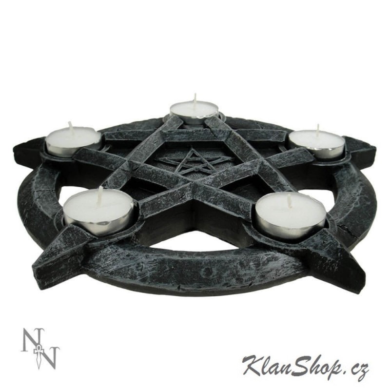 Dekorační svícen (stojan na svíčky) - pentagram na čajové svíčky.