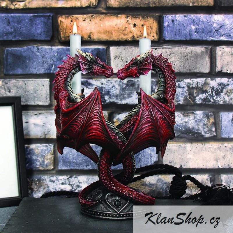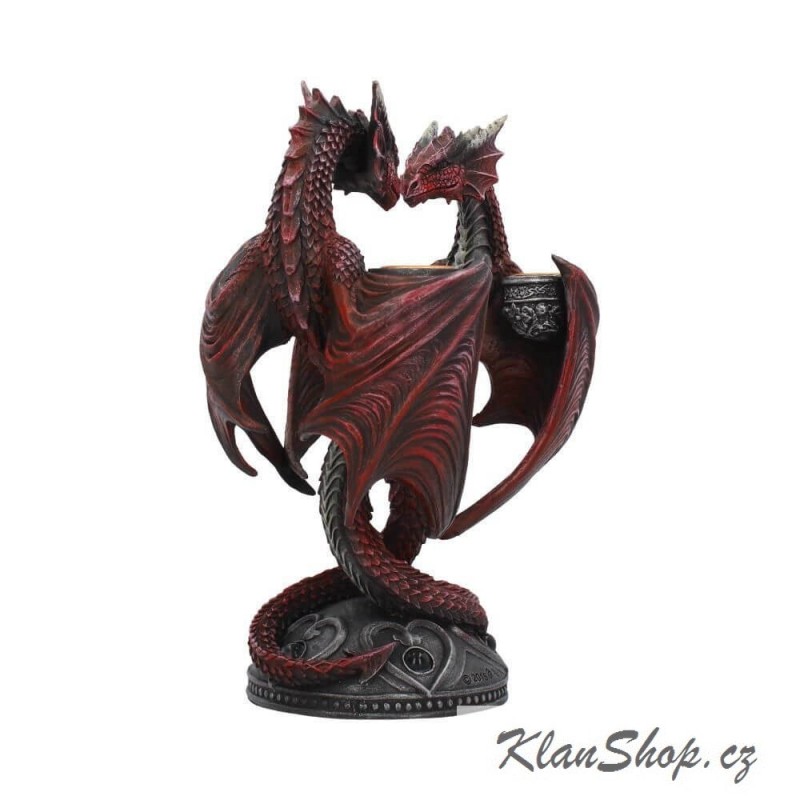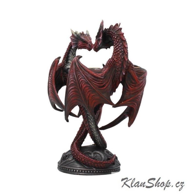 Dekorační svícen (stojan na svíčky) - rudí draci tvořící srdce.