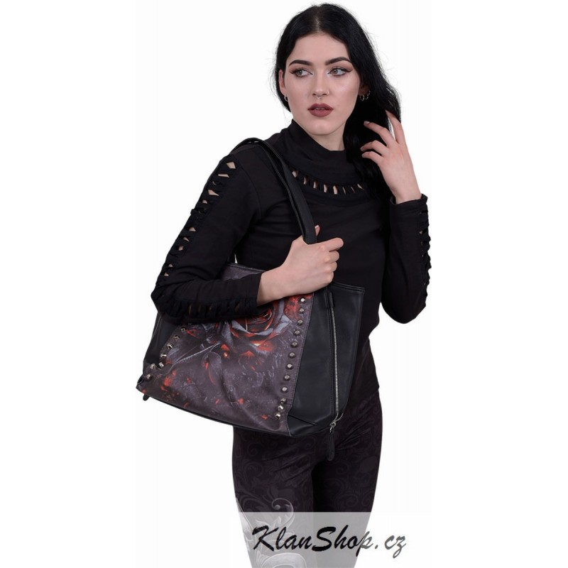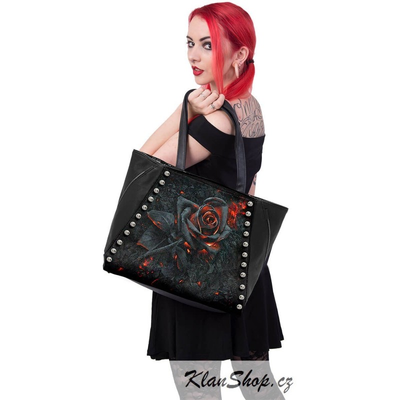 Taška (kabelka) přes rameno pro dámy se zipem, vnitřní kapsy, kabelka je se vzorem - černá shořelá růže.