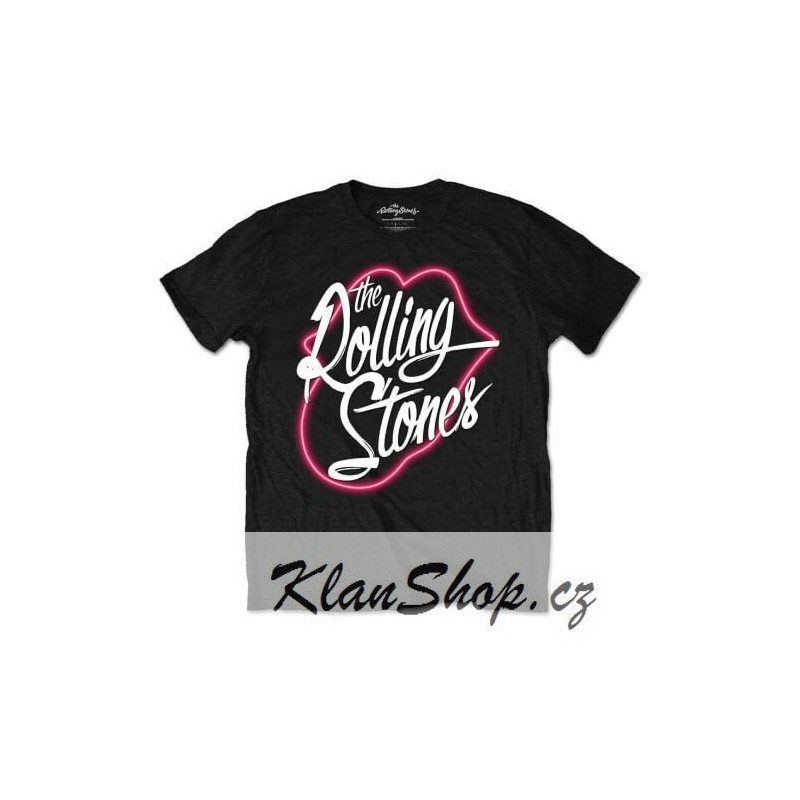 Pánské černé tričko s krátkým rukávem The Rolling Stones Neon Lips.