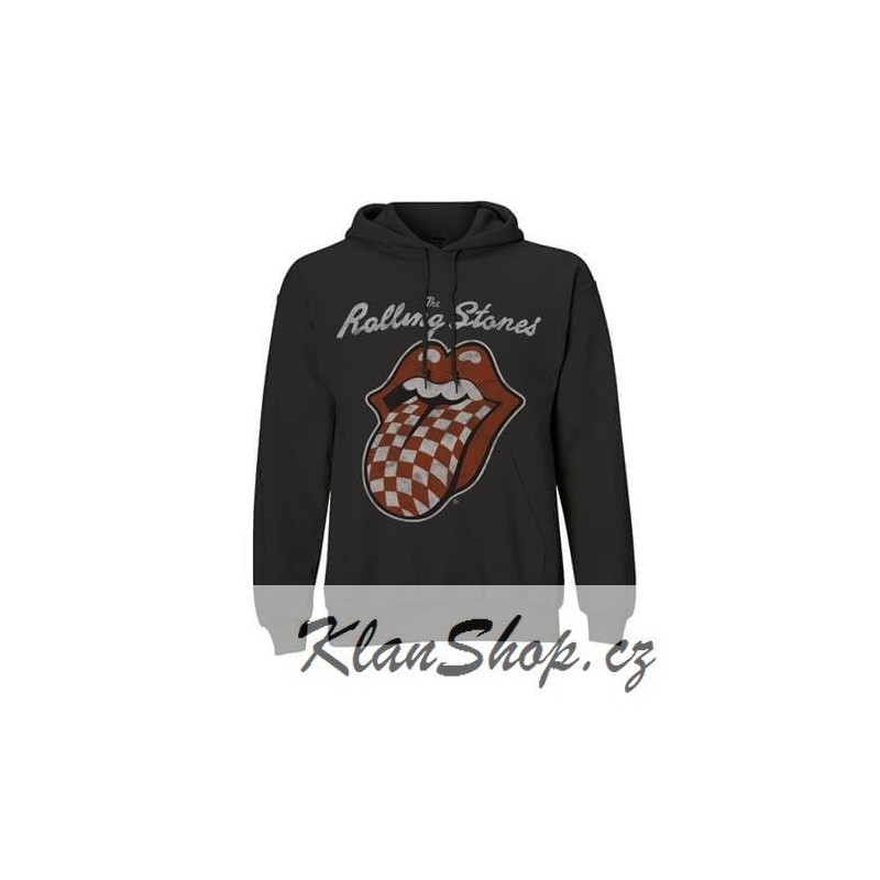 Pánská černá mikina s kapucou - The Rolling Stones Checker Tongue.