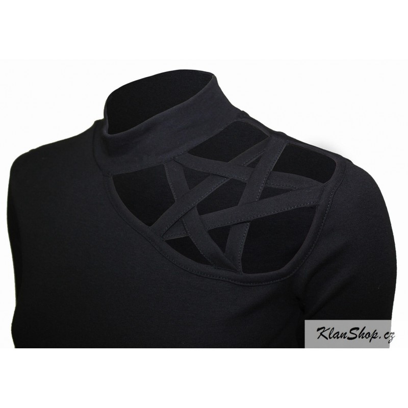 Dámské černé tričko s dlouhým rukávem, bez potisku - pentagram na rameni.