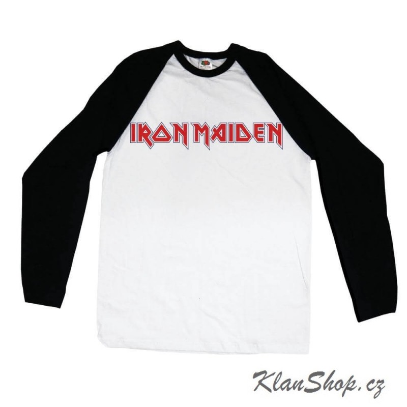 Pánské bíločerné tričko s dlouhým rukávem Iron Maiden.