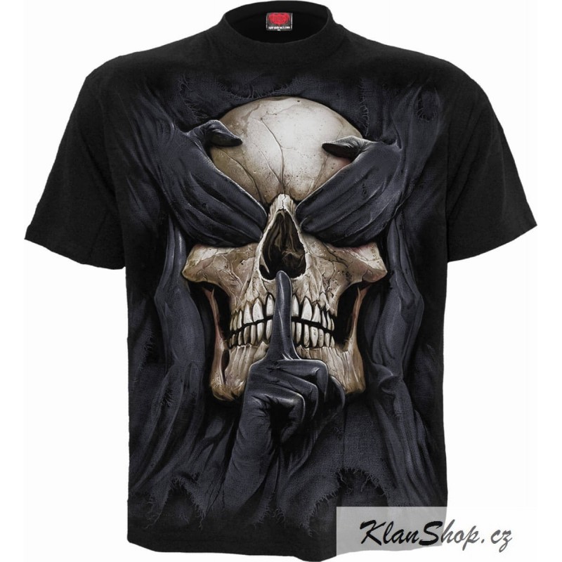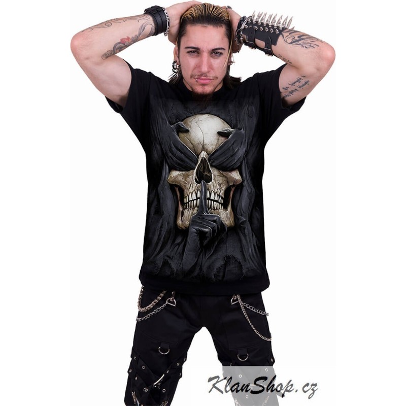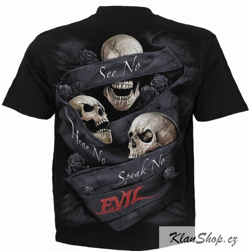 Pánské černé tričko s krátkým rukávem s potiskem - lebka nevidím, neslyším a nemluvím.
