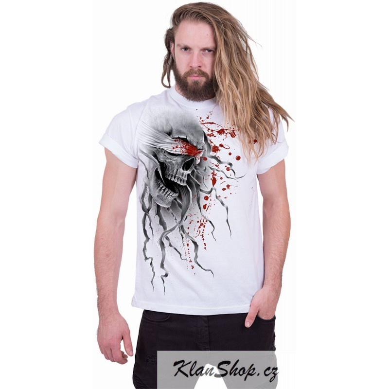 Pánské bílé tričko s krátkým rukávem s potiskem - lebka se zakrytýma očima.