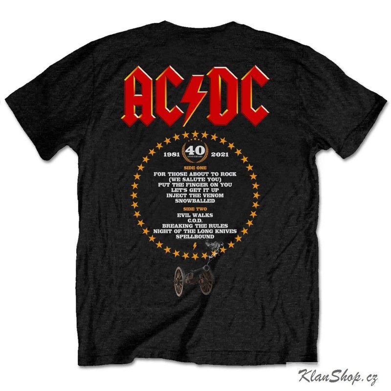 Pánské (unisex) černé tričko s krátkým rukávem ACDC For Those About To Rock 40TH Annivesary.