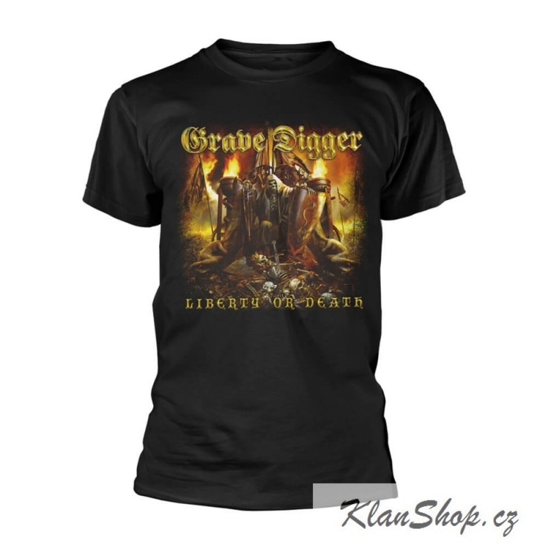Pánské (unisex) černé tričko s krátkým rukávem Grave Digger Liberty Or Death.