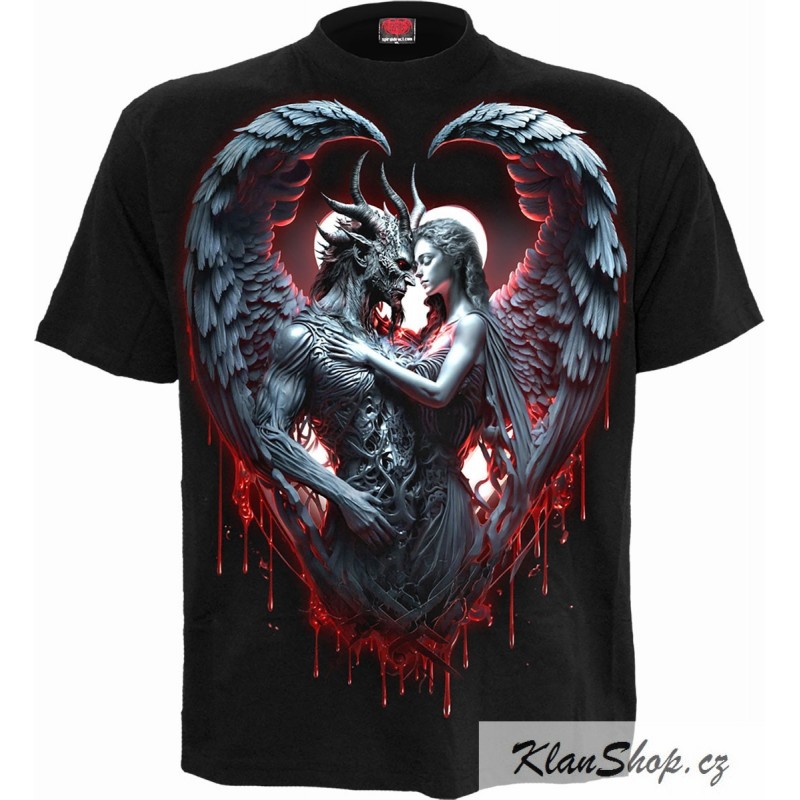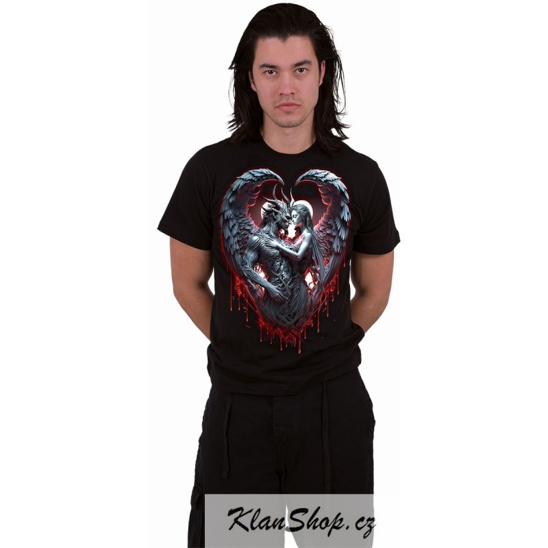 Pánské černé tričko s krátkým rukávem s potiskem - Zvíře a Anděl