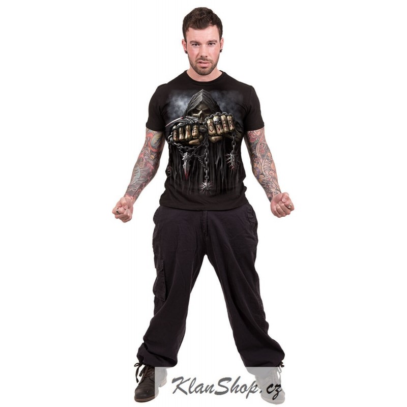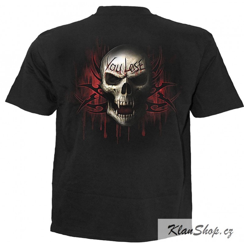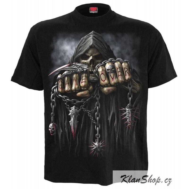 Pánské bílé tričko s krátkým rukávem a potiskem, game over smrtka.