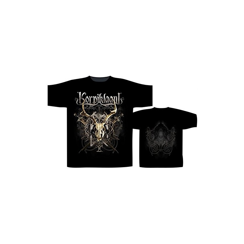 Pánské černé tričko s krátkým rukávem a potiskem, Korpiklaani Crest.