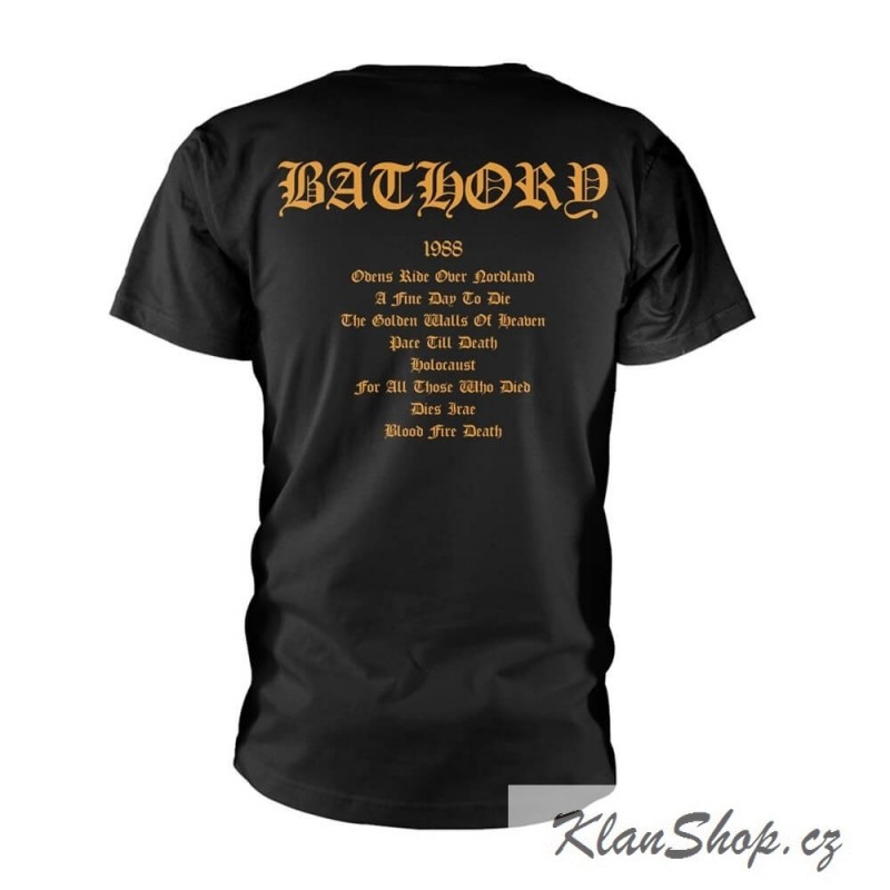Pánské černé tričko s krátkým rukávem Bathory Blood Fire Death.