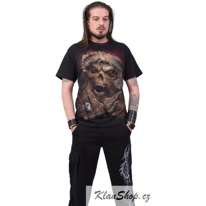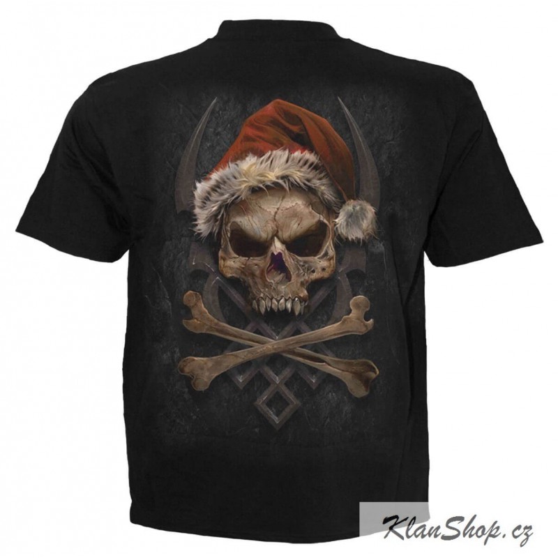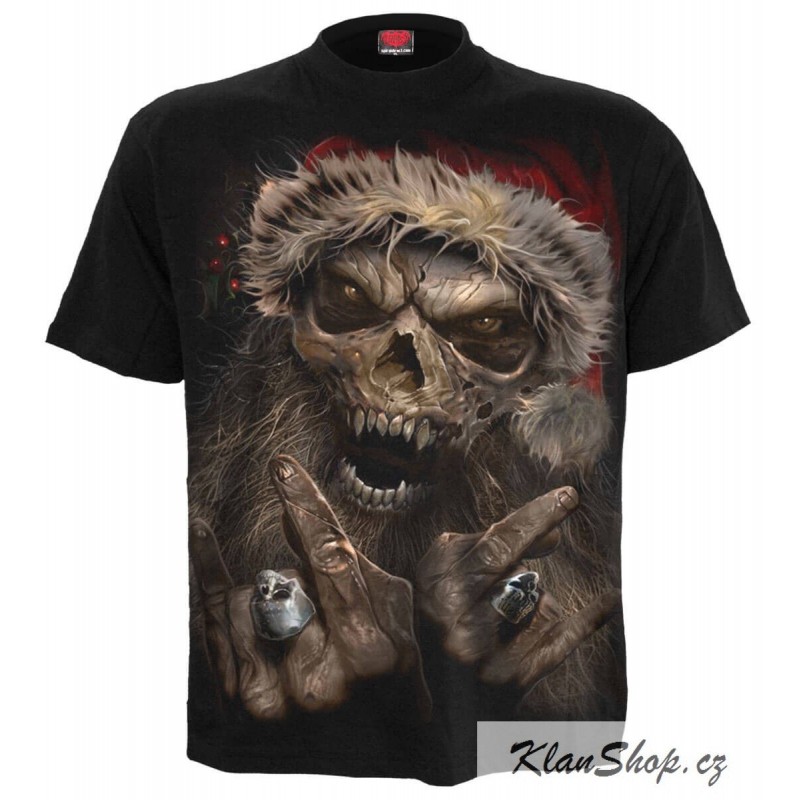 Pánské černé tričko s krátkým rukávem s potiskem, Rock Santa, Zombie anti Santa.